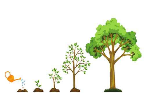 Por eso comenzamos en el nivel inicial, en el que plantamos la semilla y pronto empieza a asomar el brote 🌱 (A1 y A2). Seguimos regando y nutriendo el brote para que aparezca el plantón 🌿 (B1 y B2), que va creciendo y creciendo con tiempo, dedicación y paciencia hasta que se transforma en un árbol 🌳 (C1 y C2), primero joven y delgado y después grueso y robusto.